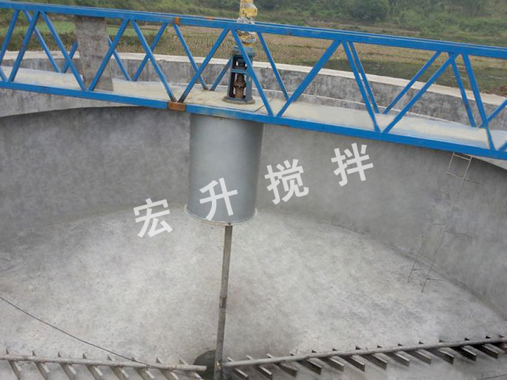 中心傳動(dòng)刮泥機(jī)原水經(jīng)中心配水筒布水后呈輻射流向池子周邊溢水槽,隨著流速的降低,水體中的懸浮物被分離而沉降于池底,上清液通過溢流堰板由出水槽排出池外。